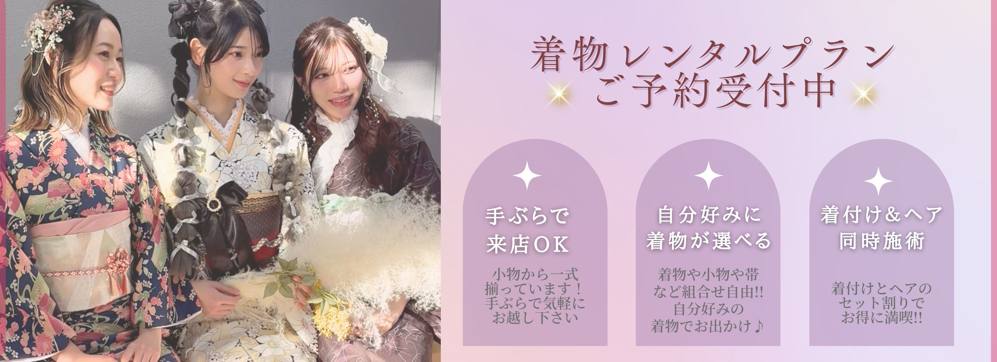 ヘアセット、メイク、着付け… どれもが「最高の一瞬」を創るための、洗練されたプロの仕事です。